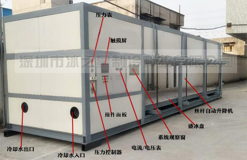 深圳冰之星日直冷式塊冰機(jī)是基本上可以做成一體式成套設(shè)備,機(jī)器拉到客戶現(xiàn)場吊裝布置好,接水電,連接好水塔即可開機(jī)制冰。